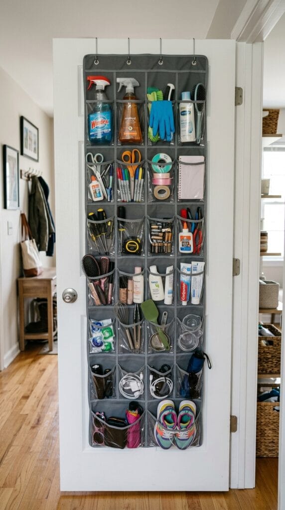 Ever notice how the back of your doors are just… blank space? Over-door organizers aren’t just for shoes anymore (though they’re still great for that).