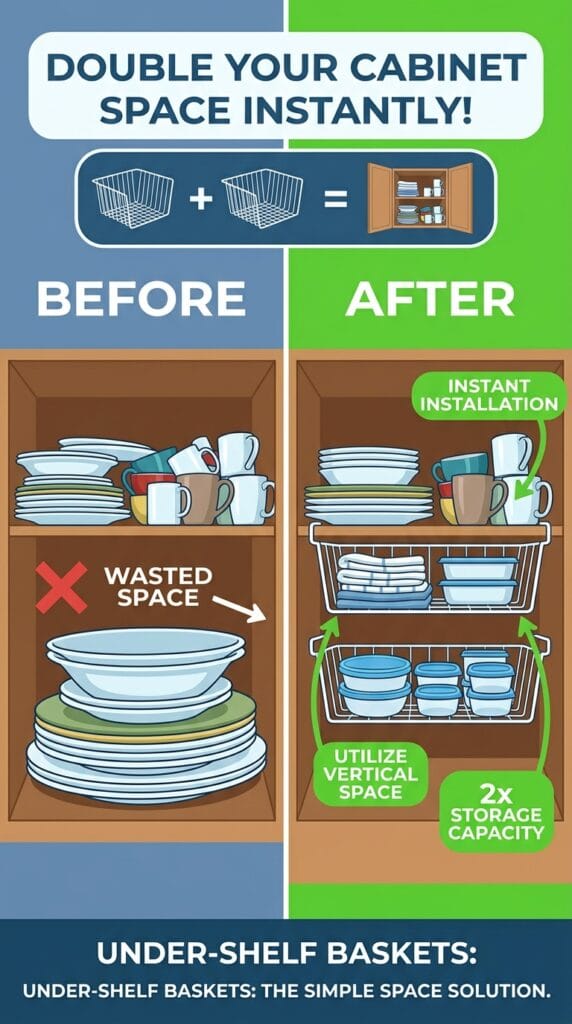 Under-Shelf Baskets: Double Your Cabinet Space Instantly