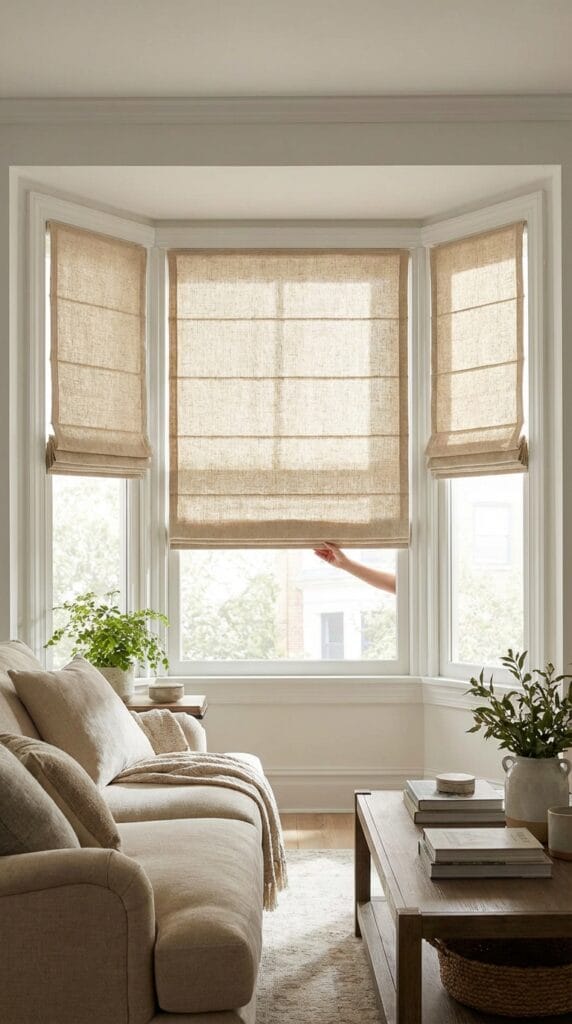 8) Try cordless Roman shades for a clean look