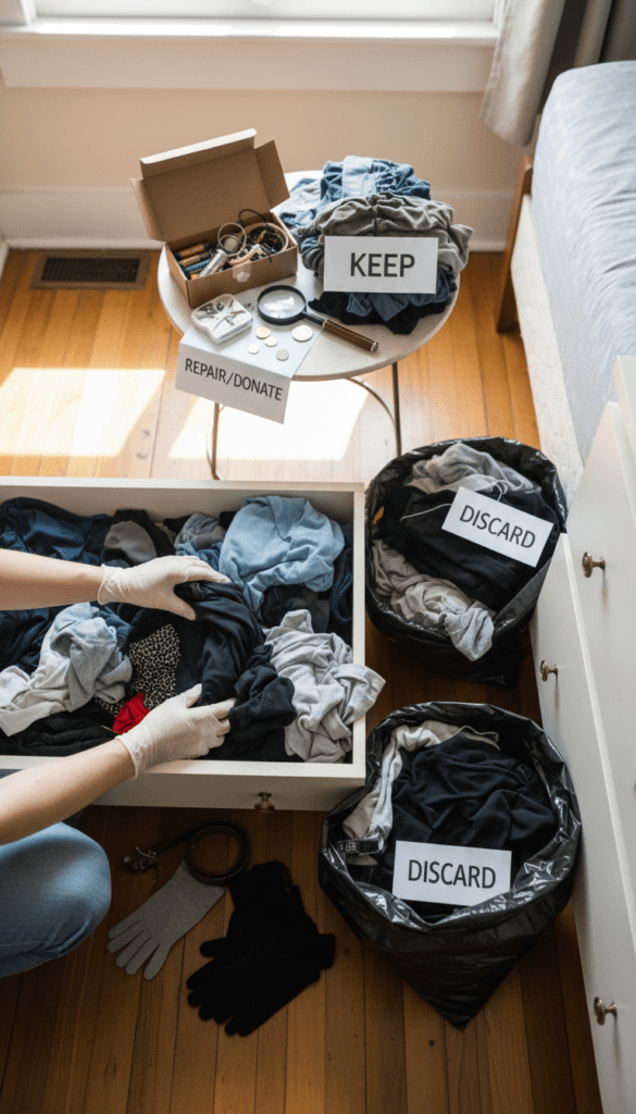 Minutes 25–35: Hit the clutter hotspots (closet, under-bed, drawers)