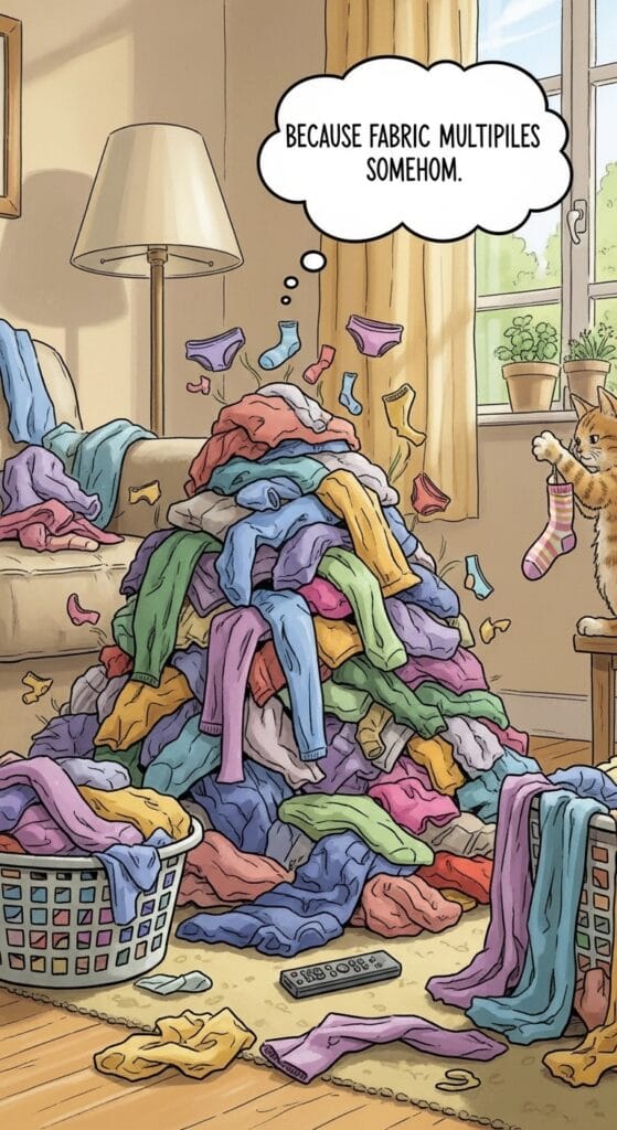 Minutes 5–15: Laundry and clothes (because fabric multiplies somehow)